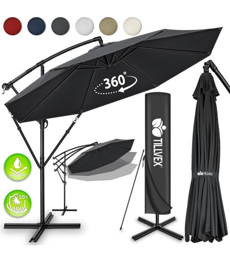 Parasol tillvex Ø 350 cm avec manivelle Pare-soleil suspendu Protection UV en aluminium pour le jardin Parasol à manivelle déperlant pour le marché Le parasol tillvex constitue un pare-soleil décoratif et pratique pour votre terrasse et votre balcon. Passez des heures délicieuses à votre espace ombragé favori – à l'abri du soleil. Ce parasol de jardin dans de beaux coloris d'été trouve sa place dans tous les espaces extérieurs et les met en valeur. L'armature en aluminium inoxydable est très solide. Le piètement stable offre une tenue sûre et un soutien fiable même par grand vent. Vous pouvez utiliser ce pare-soleil en quelques gestes simples. Une manivelle vous permet de déplier et de replier le parasol ainsi que d'ajuster son inclinaison. Ce parasol de jardin est idéal pour les terrasses, les balcons, les jardins, les restaurants ou au marché. Notre parasol suspendu peut être monté en un tour de main et en quelques minutes. Avantages produit : Bande de fermeture à velcro pour ...