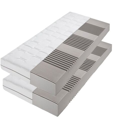 Grand Master Matelas 200x200 - Fabriqué en Allemagne Confort de sommeil de haute qualité grâce à la technologie moderne de mousse froide : Ce matelas en mousse froide 200x200 cm vous offre une expérience de sommeil confortable et réparatrice à un niveau élevé. La mousse froide à pores ouverts s'adapte précisément au corps et impressionne par sa durabilité et son excellente résilience. Avec sa hauteur confortable d'environ 26 cm, le matelas est idéal pour ceux qui apprécient la qualité et une manipulation confortable. Soutien ergonomique du corps grâce au système à 7 zones : Le système intégré de soutien corporel à 7 zones offre un soulagement ciblé des épaules, de la région lombaire et du bassin. Les surfaces de couchage sont conçues pour offrir un soutien ergonomique correct à votre colonne vertébrale dans n'importe quelle position de sommeil, que ce soit sur le dos, sur le côté ou sur le ventre. Cela évite les tensions et favorise une posture de sommeil saine – idéal comme matelas ...