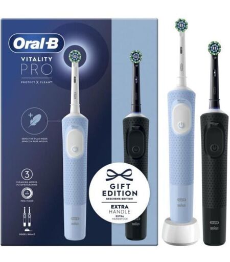 Braun Oral-B Vitality Pro Duo Adulte Brosse à dents rotative oscillante Noir, Bleu, Blanc