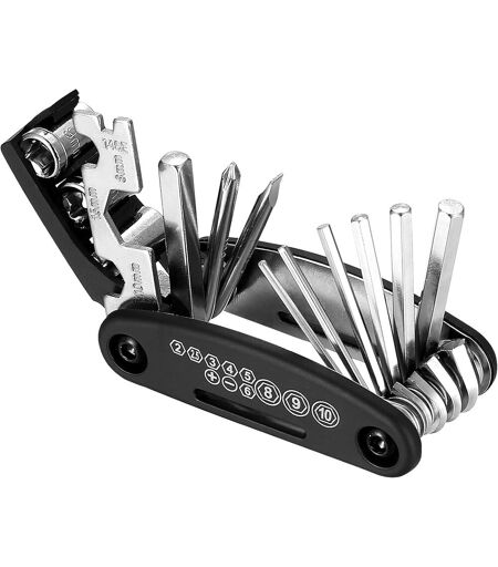 Matériaux de qualité supérieure : notre outil multifonction pour vélo est fabriqué en acier au carbone haute résistance et ABS, résistant à la corrosion, imperméable, difficile à casser ou à déformer, durable et très efficace, parfait pour les vélos.Conception compacte et portable : taille entièrement pliable, 9 cm x 4,6 cm x 2,7 cm, avec sa taille compacte et sa fonction pliable, l'outil peut être facilement mis dans votre poche ou votre sac à dos et réparer votre vélo lorsque nécessaire.Multifonction : 3 clés à douille pour serrer ou desserrer les écrous hexagonaux et les boulons sur les roues, les pédales, etc. 6 clés Allen pour régler le guidon, la hauteur du siège et d'autres pièces ; et 4 clés plates pour les boulons plus gros et les accessoires de sécurité, répondant à divers besoins de réparation.Largement utilisé : convient pour les vélos, vélos électriques, scooters, patins, motos, meubles et voitures. L'outil de vélo résout divers problèmes et assure un fonctionnement fluide dans divers environnements tels que les conditions extérieures et de montagne.Outil de réparation de vélo 16 en 1 : comprend 3 clés hexagonales à douille (8 mm, 9 mm, 10 mm), 1 tournevis à tête plate, 1 tournevis cruciforme, 6 clés hexagonales différentes (2 mm, 2,5 mm, 3 mm, 4 mm, 5 mm, 6 mm), 1 clé à rayon (14GE) et 1 rallonge de douille, et 4 clés à tête plate (8 mm, 10 mm, 15 mm) ...