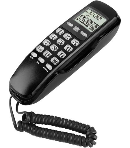 Mini Téléphone Mural,Téléphone Fixe Filaire avec Écran LCD Affichage DTMF/FSK Convient pour la Maison,Le Domicile,l`hôtel etc(Noir)