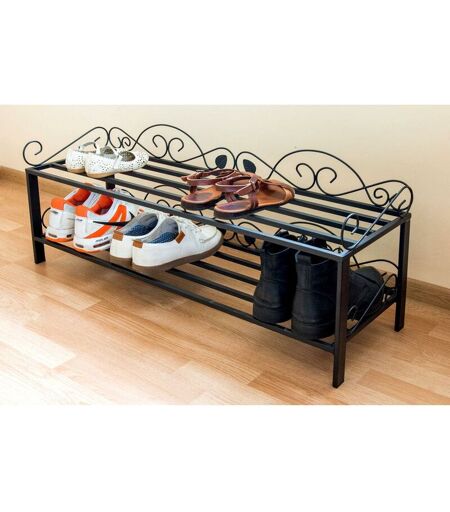 Etagère à chaussures - armoire à chaussures "Mi-2". En métal forgé et richement décoré. Couleur - noir. Dimensions: largeur environ 92 cm, profondeur environ 30 cm, hauteur environ 38 cm . ...