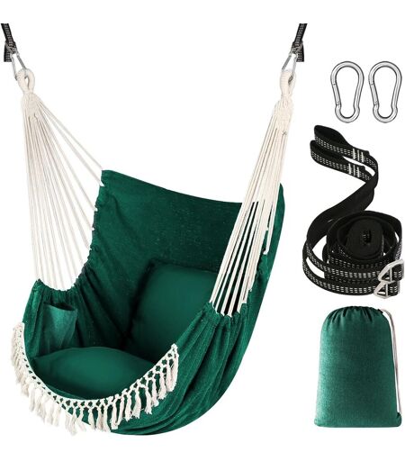 Sièges Suspendus Chaise Suspendue Hamac 2 Oreillers Inclus,Sangles Et Crochets Solides Pour Une Suspension Facile Suspendue En Coton Doux Poche De Côté Ensemble De Chaises À Pampilles Confort.[B46]