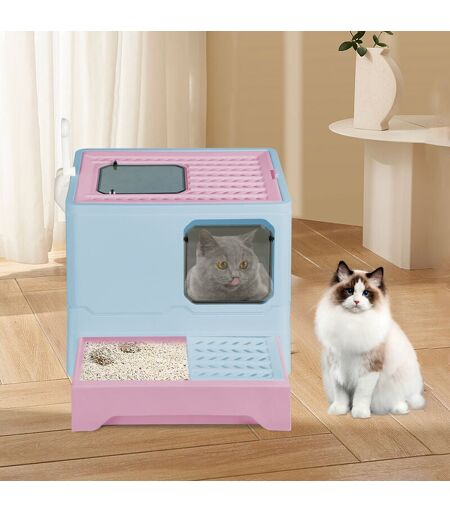 YONGQING Bac à litière pliable pour chat Entrée avant (avec panneau de porte) et sortie supérieure Très grand espace avec Bac de Tiroir et Pelle à Litière bleu