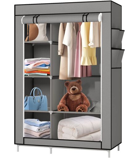 YONGQING Armoire de Rangement Penderie en Tissu intissé avec Fermeture à Glissière en Tissu Intissé 105x45x170cm-gris foncé