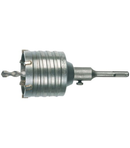 Mèche - Arêtes de coupe HM - Concentricité optimale pour des trous propres - Corps en acier trempé avec filetage femelle M16 - Profondeur de perçage maximale 50 mm - Pour le béton, la pierre, la maçonnerie, le clinker, la brique, les matériaux légers Fourniture: Avec arbre de montage et mèche centrale. . ...