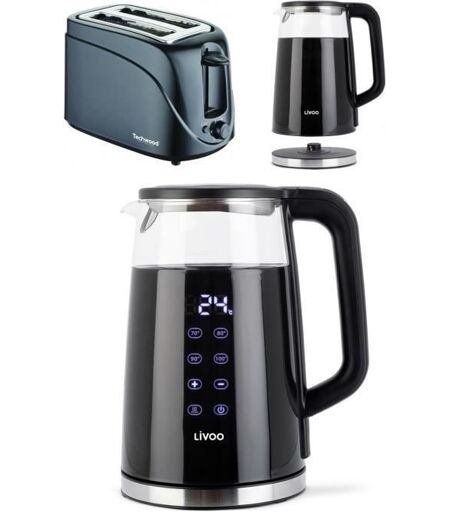 Techwood Bouilloire théière SANS FIL automatique en verre 1,7 L 2200 W Arrêt automatique Rotation à 360° sur son socle Affichage Digitale et