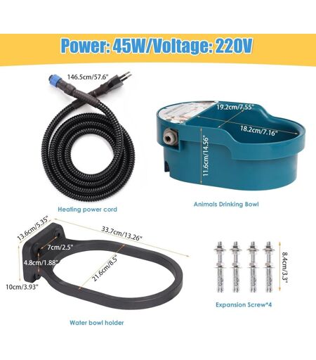 MATÉRIEL LONGUE DUREE : Il est fabriqué en plastique PP de qualité alimentaire et très résistant, respectueux de l'environnement et durable, pas facile à déformer, sûr et facile à nettoyer. Convient aux volailles, chiens, chevaux, chèvres, moutons, bovins et etc. La gamelle d'eau automatique peut être utilisée aussi bien comme gamelle d'alimentation quotidienne qu'en hiver pour éviter que l'eau ne gèle. Traduit avec DeepL.com (version gratuite) CONTRÔLE THERMOSTATIQUE : la gamelle d'eau chauffée 45w 220v, conçue pour les temps froids d'hiver, est contrôlée par thermostat, maintenant la température à environ 20¿~30¿/68-86°F. Le bol chauffé empêche également l'eau de geler et permet donc à vos animaux de compagnie de rester au chaud l'hiver. BAC D'EAU AUTOMATIQUE : l'abreuvoir cheval est équipé d'un robinet à flotteur réglable pour maintenir un niveau d'eau constant dans le bac et fournir suffisamment d'eau potable aux animaux domestiques. ce qui permet d'économiser environ 30% d'eau. Un bon assistant pour l'agriculteur. SÛR À UTILISER : câble d'enroulement du tuyau anti-bite, qui résiste à l'usure et aux morsures, assurant la sécurité de l'eau potable des animaux domestiques. Au fond de l'écuelle se trouvent 6 coussins en mousse qui empêchent l'écuelle de glisser facilement pendant l'utilisation. FACILE À FIXER : Notre abreuvoir est livré avec des supports spéciaux, Sur le dos, il y a 4 trous de fixation qui permettent une fixation sûre sur le pré ou dans l'écurie. Et vous pouvez aussi utiliser l'abreuvoir directement sur le sol..La livraison depuis la France est prévue dans 5 jours ouvrés, n'hésitez pas à passer votre commande ...