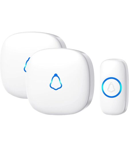 ¿Sonnette Sans Fil¿ Sonnette sans fil extérieur étanche IP55, idéale comme sonnette maison ou sonnette extérieure sans fil ¿ une doorbell pratique pour maison, appartement, bureau ou commerce. ¿Carillon 58 Mélodies¿ Carillon sans fil avec 58 mélodies, 5 niveaux de volume réglables (0¿120 dB) et fonction mémoire qui garde la dernière sonnerie sélectionnée. Avec LED lumineux et volume puissant, vous ne manquerez jamais un visiteur. ¿Bouton À Pile¿ Émetteur alimenté par pile longue durée (jusqu¿à 3 ans), sonette sans fil avec pile CR2032, IP55 étanche et résistant aux températures de ¿20 °C à 60 °C. ¿300M Longue Portée & Extensible¿ Sonnette sans-fil longue portée 300 m (1000 ft) avec connexion stable. Système extensible : un récepteur peut être associé à 20 émetteurs et un émetteur peut contrôler plusieurs récepteurs. ¿Installation Simple¿ Le bouton peut être installé rapidement sur la porte avec des vis ou un ruban adhésif 3M puissant. Branchez simplement le récepteur dans une prise murale et votre carillon sans fil est prêt à l¿emploi..La livraison depuis la France est prévue dans 5 jours ouvrés, n'hésitez pas à passer votre commande ...