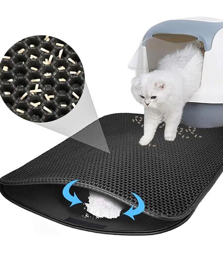 ¿Matériau Sûr¿Notre tapis de litière pour chat est spécialement conçu pour le confort et la santé des animaux de compagnie, le tapis de toilette pour chat est fabriqué en matériau EVA non toxique, doux, résistant à l'usure et doux pour les pattes sensibles des chats ¿Design Efficace¿Tapis pour litiere chat 2 couches de trous en nid d'abeille avec de grands trous et des bords arrondis, adaptés à tous les types de litière, même les plus grosses particules peuvent être collectées. ¿Imperméable et antidérapant¿La Tapis De Litière Pour Chat est dotée d'une conception à ourlet empêche toute fuite de liquide, protège vos sols contre les taches indésirables. La base antidérapante le maintient fermement en place, assure stabilité et sécurité ¿Précautions¿En raison du transport sur de longues distances, le produit aura quelques plis, qui peuvent être éliminés après quelques jours de pose à plat.Si vous avez des questions sur le produit, n'hésitez pas à nous contacter ¿Facile à Nettoyer Et Lavable¿Le tapis est facile à nettoyer sous l'évier et la saleté peut être facilement enlevée. Vous pouvez également utiliser un aspirateur pour plus de commodité..La livraison depuis la France est prévue dans 5 jours ouvrés, n'hésitez pas à passer votre commande ...