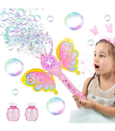 [Dream Princess Design]Awaken your child's imagination with a fairy look, including pink bubble wand, crown and removable wings. This captivating design turns the moment of play into a magical adventure they'll remember for a long time.[Fun Lights & Music]Each movement of the wand lights up with flashing lights and playful sound effects. As colorful bubbles float in the air, kids are filled with joy and enthusiasm.[Easy to Use]Simply fill the wand tank with bubble solution, insert 4 AA batteries (not included) and press the start button. Within seconds, your child is immersed in an enchanting world filled with bubbles and fun.[Safe & Durable]Made of durable and non-toxic ABS plastic, the bubble wand has smooth edges to prevent injury. Thanks to its leak-proof bottle, parents can let their kids have fun without worrying about mess or risks.[Perfect Gift] Ideal for birthdays, parties or just for fun, these bubble wands charm children with their bubbles, lights and music - all in a fairytale world that will create big smiles.Warning:Not suitable for children under 10 months.Warning:Not suitable for children under 3 years. For use under adult supervision ...