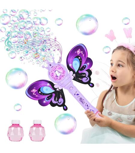 [Dream Princess Design]Awaken your child's imagination with a fairy look, including purple bubble wand, crown and removable wings. This captivating design turns the moment of play into a magical adventure they'll remember for a long time.[Fun Lights & Music]Each movement of the wand lights up with flashing lights and playful sound effects. As colorful bubbles float in the air, kids are filled with joy and enthusiasm.[Easy to Use]Simply fill the wand tank with bubble solution, insert 4 AA batteries (not included) and press the start button. Within seconds, your child is immersed in an enchanting world filled with bubbles and fun.[Safe & Durable]Made of durable and non-toxic ABS plastic, the bubble wand has smooth edges to prevent injury. Thanks to its leak-proof bottle, parents can let their kids have fun without worrying about mess or risks.[Perfect Gift] Ideal for birthdays, parties or just for fun, these bubble wands charm children with their bubbles, lights and music - all in a fairytale world that will create big smiles.Warning:Not suitable for children under 10 months.Warning:Not suitable for children under 3 years. For use under adult supervision ...