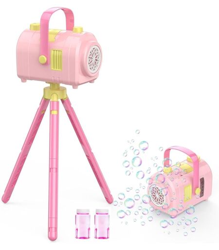 Bubble Machine,Large Capacity 10 Holes 2 Speeds 17oz/500ml,Portable Refillable Bubble Toy With Tripod For Indoor,Outdoor,Birthday,Party (Pink)