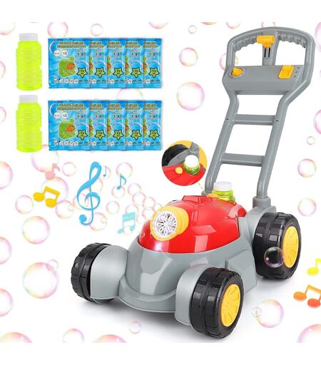 [Bubble Lawns Mowing Machine]This playset is a fantastic outdoor fun - with a bubble machine, clipper and flyers included, this set can be used by children of all ages. It contains two bubble water bottles and 10* bubble concentrates, a great toy that will make children sparkle with joy!.[Two in One]This clever creation is both a mower and a bubble factory! This lawn mower doubles as a bubble machine that kids will love. Each toy is created with bright and fun designs that your child will love. Your child can use the trimmer with or without the bubbles by simply pressing the switch!.[FUN OUTDOOR TOY]This lawn mower not only bubbles, it also produces realistic sound effects to amplify the fun, it makes more than 6000 bubbles per minute; the wheels make the sound of a gear when pushed. Indoors and outdoors, it will keep children happy. A great way to stay active and interact with your child while developing their key skills.[Excellent Quality]The bubble trimmer uses durable and safe plastic to withstand anything. It is very easy to assemble, and the handle can be detached for easy and space-saving storage.[Perfect Gifts for Kids]Safe kids games for outdoor use. It's a fun bubble trimmer set for kids, whether it's a birthday gift, Christmas gift, Halloween gift, or prize or reward, boys and girls will love this electronic lawn mower. It is the perfect summer game for outdoor entertainment, it will make your kids' games more fun and memorable!.Causes serious eye irritation.Warning:Not suitable for children under 3 years. For use under adult supervision.Warning:To be used under the direct supervision of an adult ...