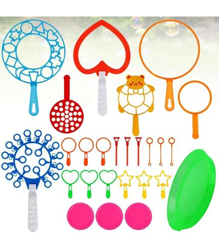[26 Piece Soap Bubble Kit]This soap bubble set is designed with different shapes of bubble wands such as heart, pentagram and circle. Blow big and beautiful bubbles easily, making the game fun to meet your different needs.[Easy to Use]Prepare the bubble solution (does not contain bubble liquid) in the bubble tray and stir the water with the bubble sticks. Finally, shake or blow the bubble wand lightly to create many colorful bubbles.[Super Outdoor Play Time]This large soap bubbles is perfect for a bubble blowing station or bubble racing game at your next carnival, Luau beach or pool party.Unique design: children's bubble contains many different shapes and colours of bubble blowing tools, the colourful bubbles create a dream scene for your child, it is a perfect summer toy for children.[Wide Use] The soap bubble kit can be used in the garden, wedding bubbles, parties, children's birthdays, playgrounds, excursions, school events and other outdoor activities. Create great memories and decorate your photos with colorful soap bubbles ...