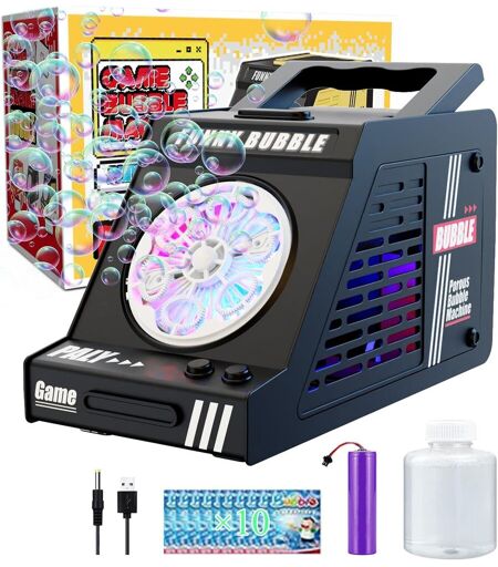 [10000+ Big Bubbles Per Minute] Featuring 6 large bubble wands and powerful motor, the bubble machine can automatically produce 10000+ large colorful bubbles per minute. Massive bubble production brings children endless joy in the ocean world of bubbles, exciting laughter and echoes around them.[Automatic Bubble Machine] One button allows tons of bubbles to pop in the air, one-click friendly design is ideal for children, who will always enjoy the instant bubble show. The compact and portable handle makes it easy for kids to take it to the park, garden or backyard. Start having fun with this automatic bubble machine.[Colorful Lights, Dual Powered] Built-in colorful lights make the bubbles more sparkling and visible even in the dark, making the night party more attractive. The bubble machine supports 2 power modes: USB cable (included) or rechargeable battery (included). The flexibility of battery or USB power makes it perfect for everyday fun indoors or outdoors.[Child-friendly Bubble Toy] The bubble machine for children uses quality materials, smooth surface without sharp edges and complies with the standards of children's toys, it is safe and reliable for small children. The bubble machine contains a large amount of bubble solution (190ml bottle and 10 bags of refill solution), which allows kids to have hours of fun outdoors.[Suitable for Various Occasions] The portable bubble machine is an indispensable outdoor toy for various occasions, it provides endless joy for children and pets, but it also creates a pleasant atmosphere for parties, weddings, birthdays, garden, patio, beach, pool, games, camping and other outdoor activities. It is a great gift for children.Warning:Not suitable for children under 36 months.Warning:Toy inside. Adult supervision recommended ...