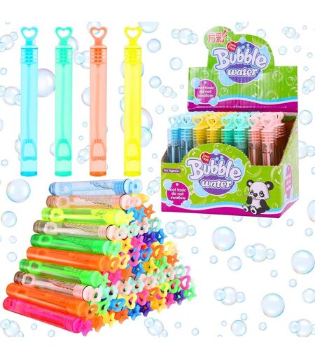 Soap Bubble Set for Kids - Each pack contains 48 different colors soap bubble wands. Lightweight and portable, perfect for parties and lots of fun for kids.HIGH QUALITY SOAP BUBBLES - Made of high quality plastic, durable and safe, safe for children. The bubble sticks are reusable several times.Easy to use: the bubble stick is already filled with bubble liquid and can be used immediately. For weddings, create a romantic moment with these beautiful soap bubbles.Attractive design: the size of the bubble stick is 10cm, 3 different shapes of beautiful bubble stick handles: hearts, roses and stars, attractive to children, the bubble rod is attached to the cap, easy to hold and use, you can easily create a romantic atmosphere with the air hose.PERFECT GIFT Perfect size to put them in party bags or as party favors Kids soap bubbles are ideal for party favors, suitable for summer toys, garden, kids, children's birthday gifts.Warning:Not suitable for children under 36 months.Warning:Toy inside. Adult supervision recommended ...