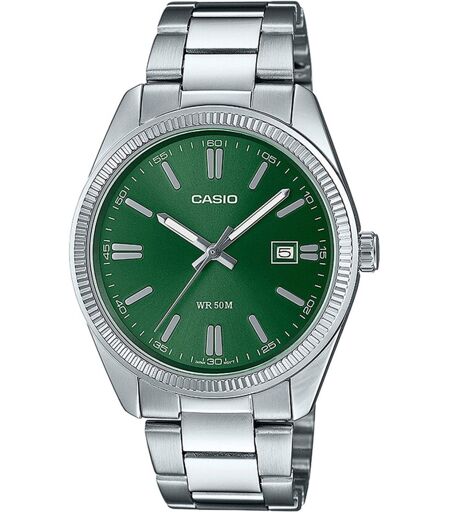 3Suisses : Avec son affichage analogique, son dateur à 3h et son étanchéité de 5ATM, cette Montre Homme MTP-1302PD-3AVEF - CASIO ne peut que plaire. Caractéristiques: Matière boîtier: Laiton Matière bracelet: Acier inoxydable Forme boîtier: Rond Mouvement: Quartz Type de fermeture: Boucle Déployante Affichage: Analogique Fonctionnalité: Dateur Type de verre: Minéral Etanchéité: 50 m (5 ATM) 3 ans - 1 pile Poids: 105 g Diamètre boîtier: 44 mm Largeur bracelet: 38 mm Type: Montre Marque: Casio Genre: Homme Styles: Mode Age: Adulte Couleur du bracelet: Argent Mouvement: Quartz Fonctionnalités: Dateur Matière Bracelet: Acier Conditionnement: Ecrin de la marque Garantie: 2 Ans Type de garantie: Fabricant Affichage: Analogique Etanchéité: 50 m (5 ATM) Matière Boitier: Acier Forme de Boitier: Rond Couleur du cadran: Vert Verre: Minéral Type Fermeture: Boucle déployante Diamètre Boitier: 44 mm ...