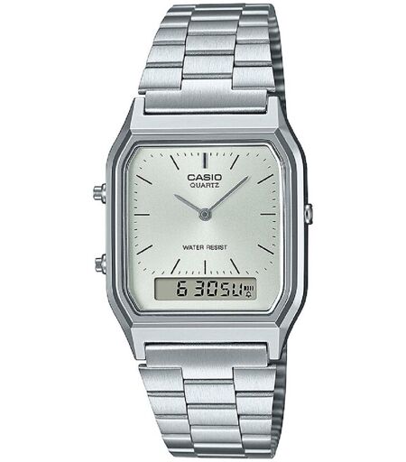 3Suisses : Cette Casio est une Montre Femme AQ-230A-7AMQYES - Casio alliant élégance et modernité. Son boitier de couleur argentée donne une finition sophistiquée. L'horlogerie principalement présente une qualité de précision inégalée, une particularité propre à la marque. Vous adorerez son esthétique minimaliste et son design épuré qui conviendra aussi bien aux hommes qu'aux femmes. Un magnifique accessoire intemporel, silencieux et esthétiquement attrayant qui ne manquera pas d'ajouter une touche de distinction à chaque tenue. Type: Montre Marque: Casio Genre: Femme Styles: Classique Age: Adulte Couleur du bracelet: Argent Mouvement: Quartz Matière Bracelet: Acier Affichage: Digital Etanchéité: 100 m (10 ATM) Matière Boitier: Acier Forme de Boitier: Rectangulaire Couleur du cadran: Acier Verre: Saphir Type Fermeture: Boucle déployante ...