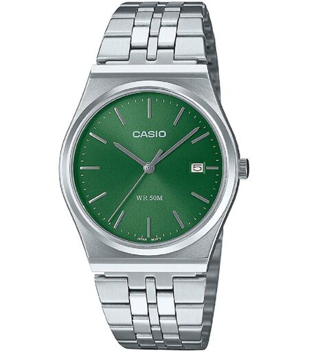 3Suisses : La Casio Timeless Collection - MTP-B145D-3AVEF est une montre pour homme présentant une allure classique avec son boîtier rond en acier de couleur argent. Son affichage est analogique, resplendissant sous un verre minéral. La distinction de cette montre Casio réside également dans son bracelet en acier de couleur argent, attaché par une boucle déployante. Équipée d'une fonction dateur, elle fonctionne avec un mouvement Quartz et offre une étanchéité jusqu'à 50m. Type: Montre Marque: Casio Genre: Homme Styles: Sport Age: Adulte Couleur du bracelet: Argent Mouvement: Quartz Fonctionnalités: Dateur Matière Bracelet: Acier Affichage: Analogique Etanchéité: 50 m (5 ATM) Matière Boitier: Acier Forme de Boitier: Rond Couleur du cadran: Vert Verre: Minéral Type Fermeture: Boucle déployante Diamètre Boitier: 30 mm ...