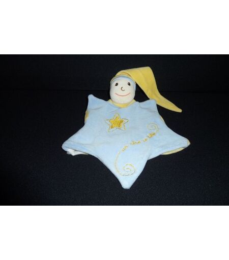 Description du doudou : doudou forme marionnette, long bonnet jaune. Coloris : bleu et jaune au verso. Velours super doux. Etat : occasion en très bon état (juste décousu à un endroit), jamais utilisé, produit original. ...
