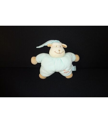 Description du doudou : Doudou semi plat 17 cm environ, grelot, bonnet à rayures turquoise et blanc. Coloris : turquoise. Velours super doux. Etat : comme neuf, jamais utilisé, produit original. ...