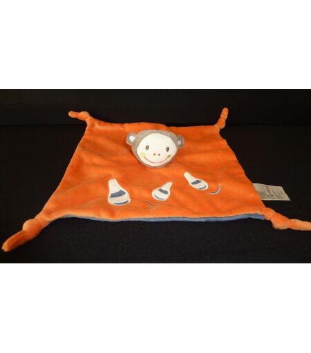 Description du doudou : Doudou plat, carré, 4 nouages. Coloris : orange et bleu au verso, quilles brodées. Velours super doux. Etat : comme neuf, jamais utilisé, produit original. ...