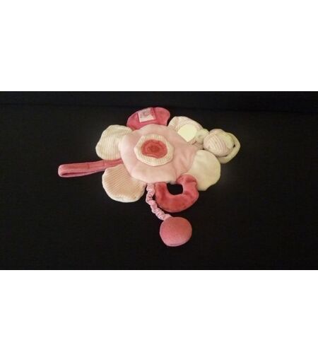 Description : doudou éveil plat en forme de fleur : petit miroir, grelot, pétales bruissante, petit pouet pouet sur une pétale. Coloris : rose. Velours et tissu super doux. Etat : occasion en très bon état (miroir un peu griffé, scratch adhère moins), produit original. ...