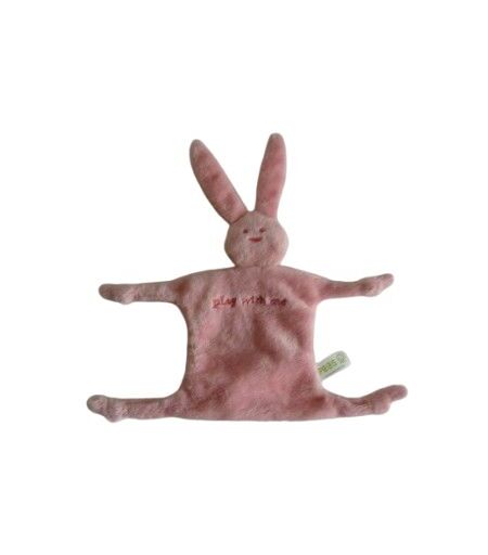 Doudou plat lapin 24 cm environ oreilles comprises, rose, play with me brodé. Etat : Comme neuf ...