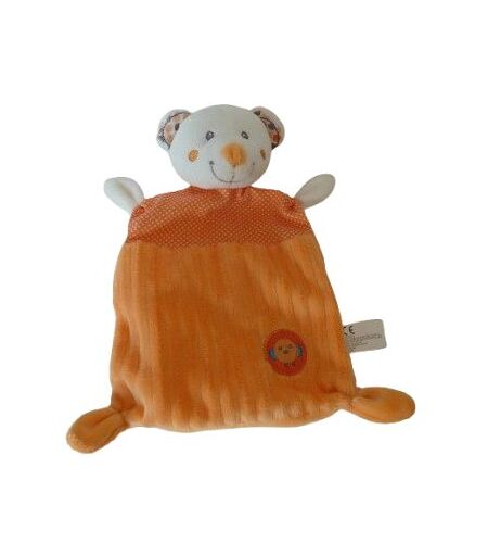 Doudou plat ours 25 cm environ, orange motifs. Etat : Comme neuf ...