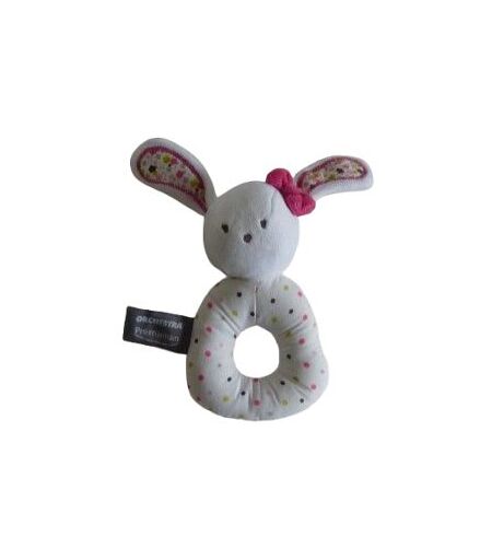Doudou hochet lapin 17 cm environ, grelot, blanc fuschia motif pois. Etat : Comme neuf ...
