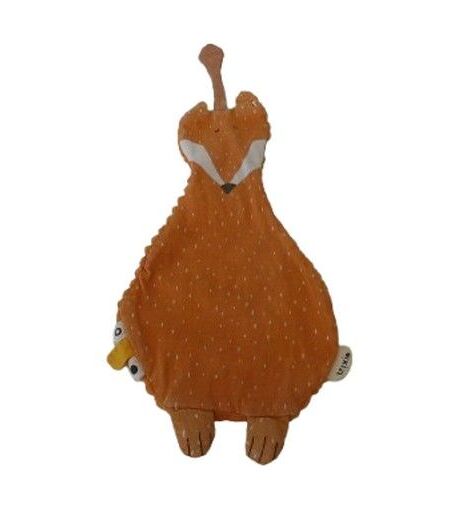 Doudou renard plat 38 cm environ, orange blanc au recto motif gouttes d'eau et velours côtelé orange au verso. Etat : Très bon état ...