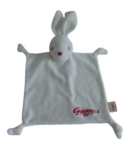 Doudou plat lapin 34 cm environ, blanc nez rouge Guigoz 2 brodé en rouge. Etat : Comme neuf ...