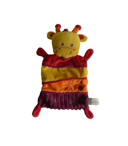 Doudou plat girafe 30 cm environ, jaune rouge bordeaux orange. Etat : Comme neuf ...