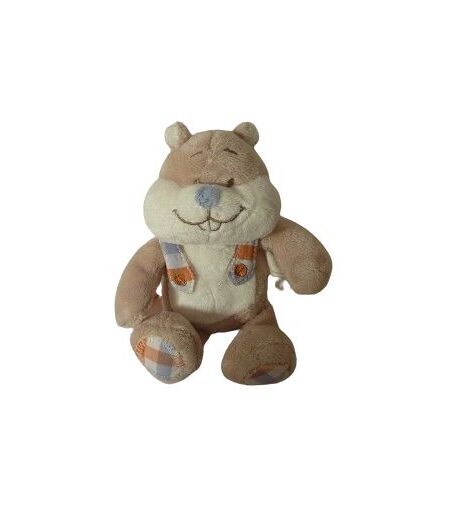 Doudou peluche musicale castor 18 cm environ, marron blanc. Etat : Comme neuf ...