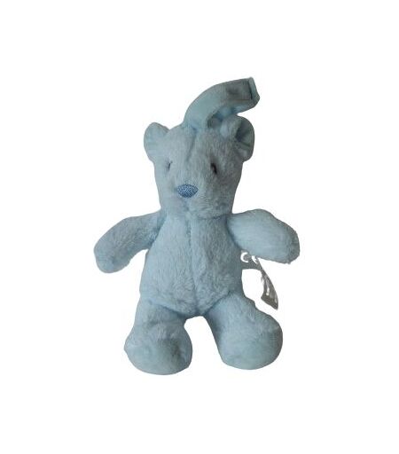 Doudou peluche ours 20 cm environ, grelot, bleu, attache par velcro. Etat : Comme neuf ...