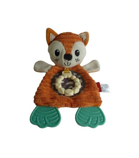 Doudou plat renard 25 cm environ, anneaux de dentition, matière bruissante, orange blanc motif nuage. Etat : Très bon état ...