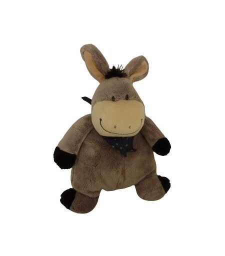 Doudou peluche âne 29 cm environ sans compter les oreilles, gris noir bandana bleu marine motif carré. Etat : Comme neuf (étiquette marque coupée) ...