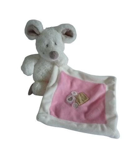 Doudou peluche mouchoir souris 26 cm environ, blanc rose. Etat : Comme neuf ...