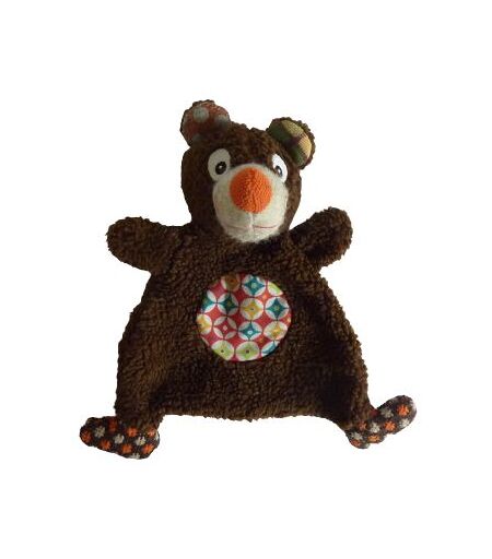 Doudou plat ours 25 cm environ, marron et multicolore. Etat : Comme neuf. ...