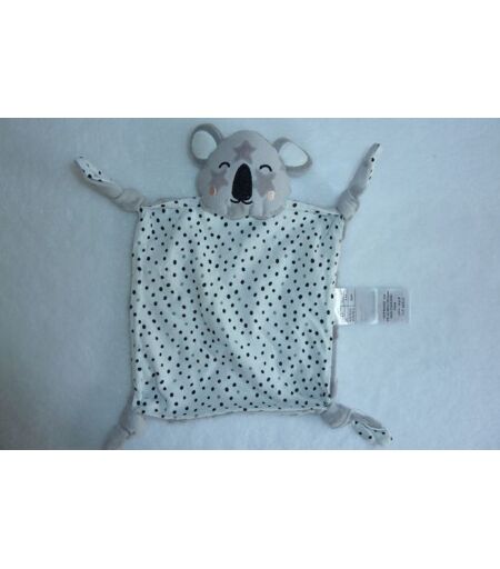 Doudou plat 4 nouages koala 26 cm environ, gris blanc motifs pois étoiles. Etat : Comme neuf ...