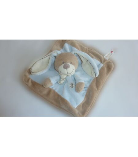 Doudou plat lapin 22x22 cm environ, bleu marron. Etat : Comme neuf ...