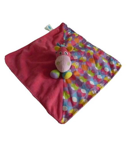 Doudou plat cheval 33x33 cm environ, rose fuschia motifs. Etat : Comme neuf ...