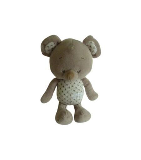 Doudou peluche ours 26 cm environ, gris motifs. Etat : Comme neuf ...