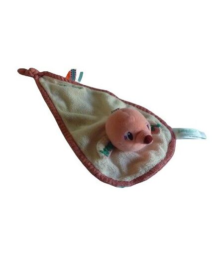 Doudou plat flamant rose 32 cm environ, rose pêche pâle. Etat : très bon état (une étiquette coupée) ...