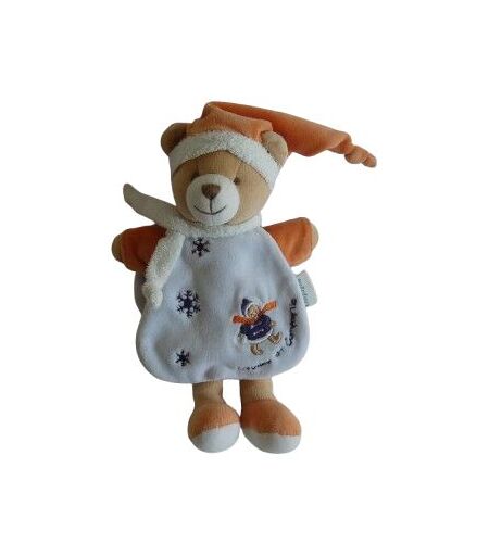 Doudou peluche ours 23 cm environ sans compter le bonnet, cape bleu, orange marron. Etat : Bon état (quelques marques d'usures légères) ...