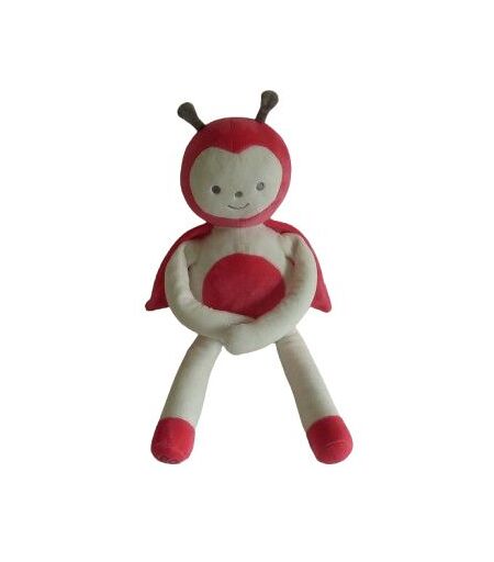 Doudou peluche coccinelle 42 cm environ, blanc rose, velcro aux patte. ATTENTION 2 MODELES AVEC ANTENNES DIFFERENTES : celui-ci a les antennes classique. Etat : comme neuf (sans couverture) ...