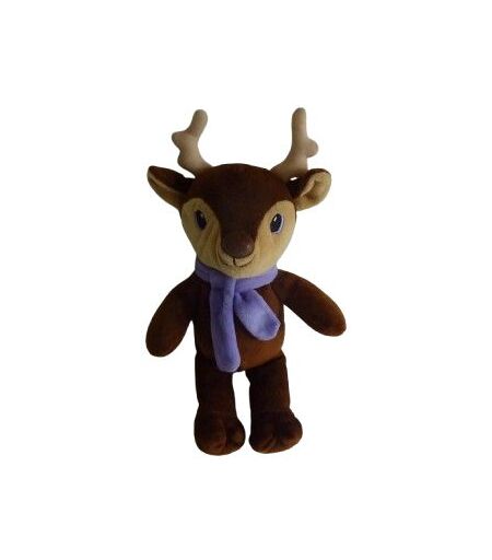 Doudou peluche renne 23 cm environ sans compter les bois, marron beige écharpe violette. Etat : Parfait état (juste le nez un peu gratté) ...