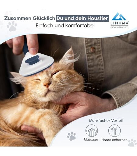 SUITABLE FOR ALL COAT TYPES - Discover the LINUMA Pet Brush - Perfect for all coat types. Whether short or long bristles, this brush makes grooming a breeze. Your pet will love it.Easy hair removal: with the push of a button, easily remove all collected hairs from the brush for quick and stress-free cleaning.Ergonomic silicone handle: comfortable grip thanks to non-slip soft silicone - perfect for long treatment sessions without hand fatigue. EASY CLEANING: Another push of a button and the brush is ready to use. Order now and give your pet a soothing care.Skin-friendly and soft: The rounded bristles protect your pet's sensitive skin and ensure comfortable care - gentle and effective at the same time. ...