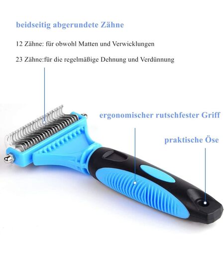 HIGH QUALITY: Our stainless steel teeth are strong and sharp to last for years. These anti-dandruff brushes/undercoat rakes are controlled during the manufacturing process; parts will not loosen or collapse. It is the best comb for dogs, cats and all furry friends.DOUBLE SIDED DESIGN - Start with the 12 teeth side for heavy duty mats and knots, and finish with the 23 teeth side for thinning and untangling.COMFORTABLE TO USE: Lightweight, non-slip rubber handle for comfortable hold and stability. With this brush, you will absolutely enjoy your grooming time.Free comb detail design: The metal teeth of these dog combs have two different densities. The wide teeth can be used to comb knotted fur, while the dense teeth are suitable for combing soft hair near the eyes, ears and thin for combing leg hair.3 sizes of tick tweezers: easy and safe removal of ticks ideal for the wallet. Size S for nymphs. M and L for large ticks. ...